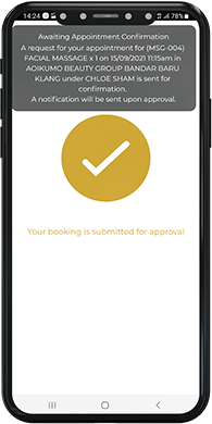 Pasien Anda kini dapat melakukan pemesanan melalui aplikasi dengan memilih cabang pilihan, layanan, tanggal, staf, dan waktu yang diinginkan.
